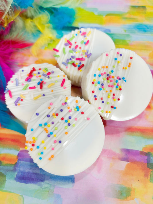 Funfetti White Chocolate Covered Sandwich Cookies – 1 Dozen